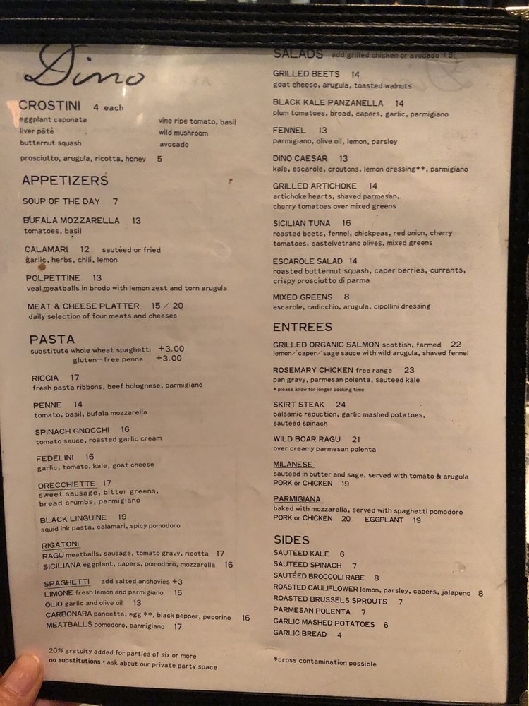 Dino is a charming Italian restaurant located at 222 Dekalb Ave in Brooklyn, NY. Known for its cozy and intimate setting, Dino offers a variety of appetizers, crostinis, and salads to tantalize your taste buds. From the crispy Polenta Bites to the Grilled Beets Salad, each dish is expertly crafted and bursting with flavor.